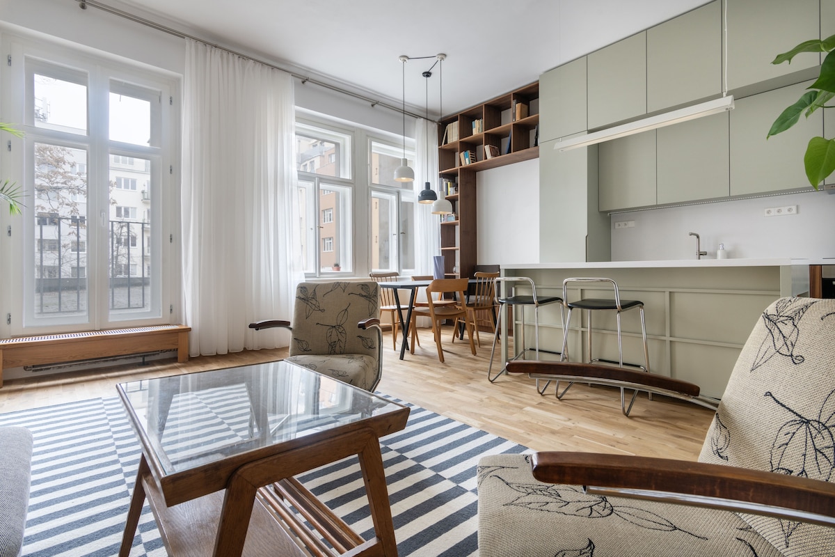 Light, Space & Comfort; this art deco yet modern apartment has all the makings of a memorable visit to Prague. How you start matters, and as a passing traveller this newly-reconstructed flat will be your every day beginning, putting you in the right mood to explore the city. It’ll also be your favourite place to relax, after a full day of new discoveries. You won’t just be on vacation, you will feel like you are in one.