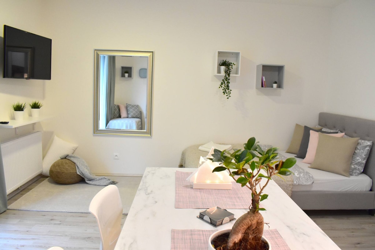 Welcome to our stylish new, fully furnished studio apartment. This chic urban retreat offers a perfect blend of comfort and sophistication, with contemporary décor and high-quality finishes throughout. The open layout features a cozy living area, a fully equipped kitchen, a luxurious sleeping area, and a modern bathroom. Situated in a vibrant neighborhood, this studio provides the perfect home base for exploring the city. Book now for a luxurious and hassle-free stay in the heart of the city!