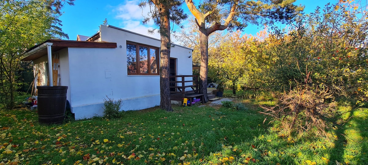 The house is situated in a big art garden full of stone and metal statues,other artifacts,next to the main house. Near Prague center. 2 minutes to a bus stop. Close to metro (subway) station. 20 minutes to the center of Prague. The house has fully equipped kitchen and bathroom. Sleeping are is on the upper level of the house. Garden with fully equipped summer kitchen and BBQ. Free wi-fi and parking in the garden. Possibility to get a lift from the airport/railway station - contact us.