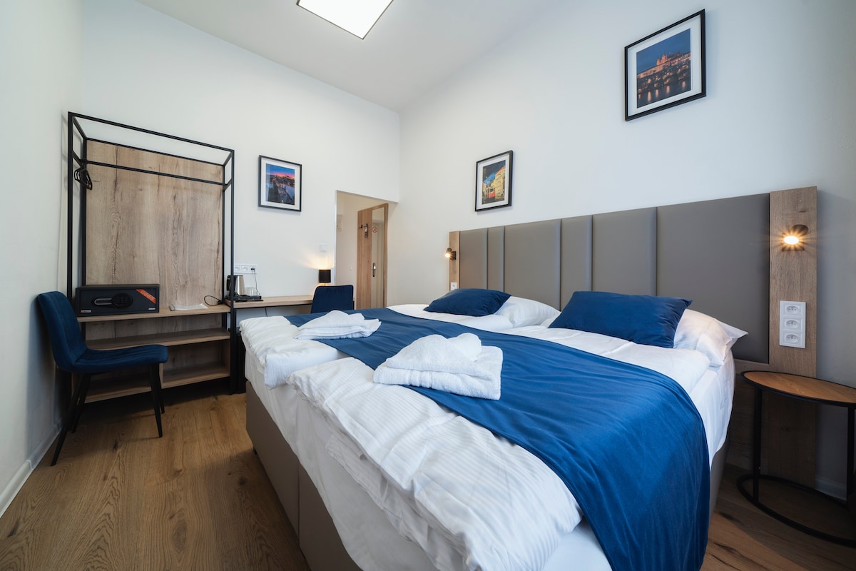 A lovely hotel room with a bathroom and a view of a quiet courtyard. Working desk. Free Wi-Fi. TV. The renovation took place in 2024. Quiet neighborhood within walking distance of historical monuments (800 meters Wenceslas Square). Shops, cafes, cinemas, parks nearby. Please note that city tax 2,2€/pers./night is to be paid upon arrival.