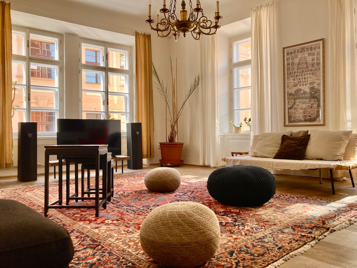 Welcome to our luxurious stylish apartment in the heart of Old Town, offering breathtaking views from every window. Immerse yourself in the city's rich history as you explore key attractions like the famous Orloj clock and the Charles Bridge, both just steps away. Indulge in the best of both historic and modern spheres with high-end shopping streets with delicious coffee shops, restaurants and the vibrant club district within easy reach, ensuring a perfect balance of convenience and excitement.