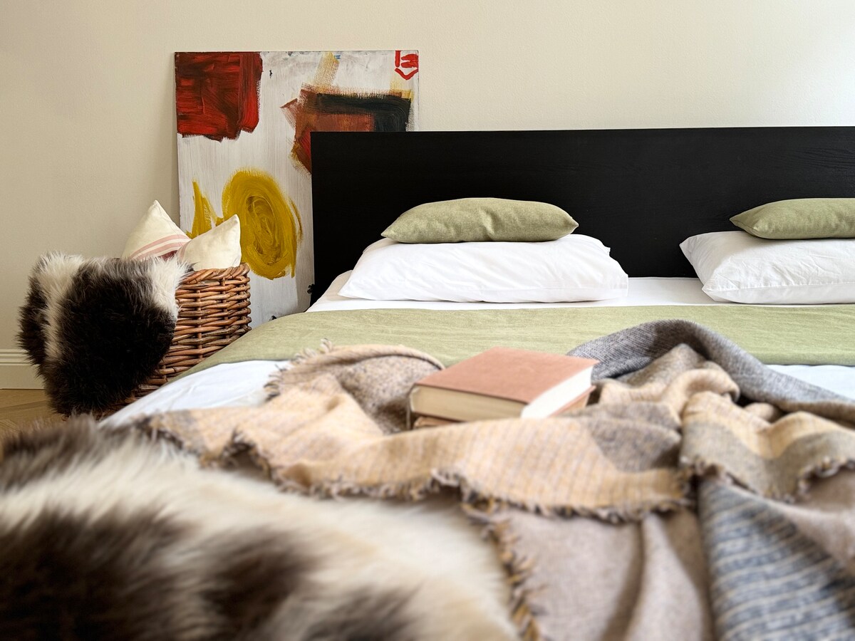 This cosy and bright apartment is located on the second floor of a building right in the heart of Prague. The one-bedroom apartment has a spacious double bed, fold-out sofa, storage space and a fully equipped kitchen with a fridge, kettle, coffee machine and other kitchen essentials. There is also a private bathroom with a shower. The modern apartment with wooden floors is complemented by large windows with views into the peaceful inner block.