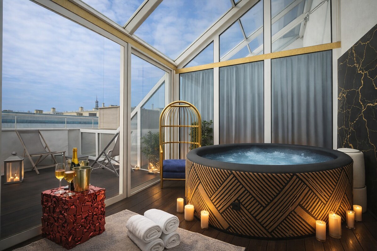 A totally wonderful and unbelievably beautiful place. Touch the sky. Touch the stars from the roof penthouse!!! It is so extraordinary that it used to be popular even with foreign diplomats and film stars.Besides comfort of an exceptional level, this newly refurbished and equipped penthouse provides amazing views of the whole Prague City and its most significant sights. Enjoy the views of Prague Castle, Old Town Square and the mini Eiffel Tower from the amazing jacuzzi directly under the star...
