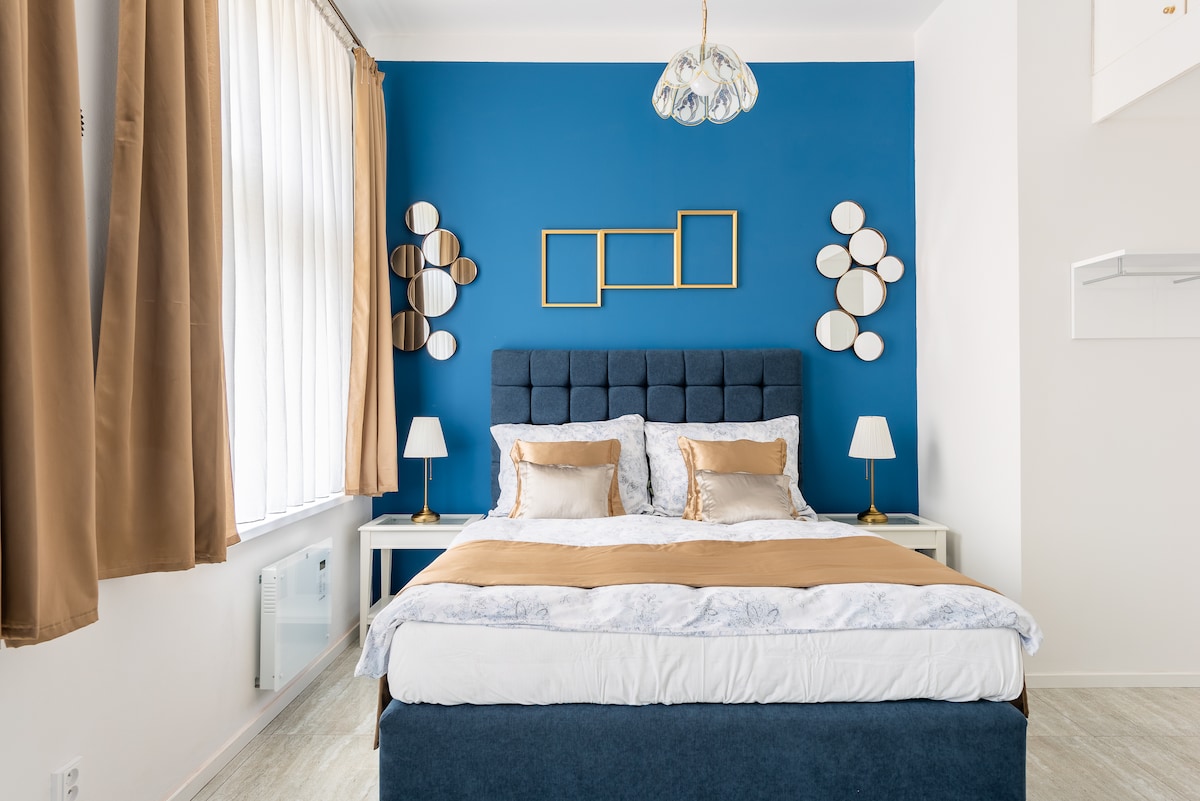 Navy Blue Elegance: Central Apartment with A/C