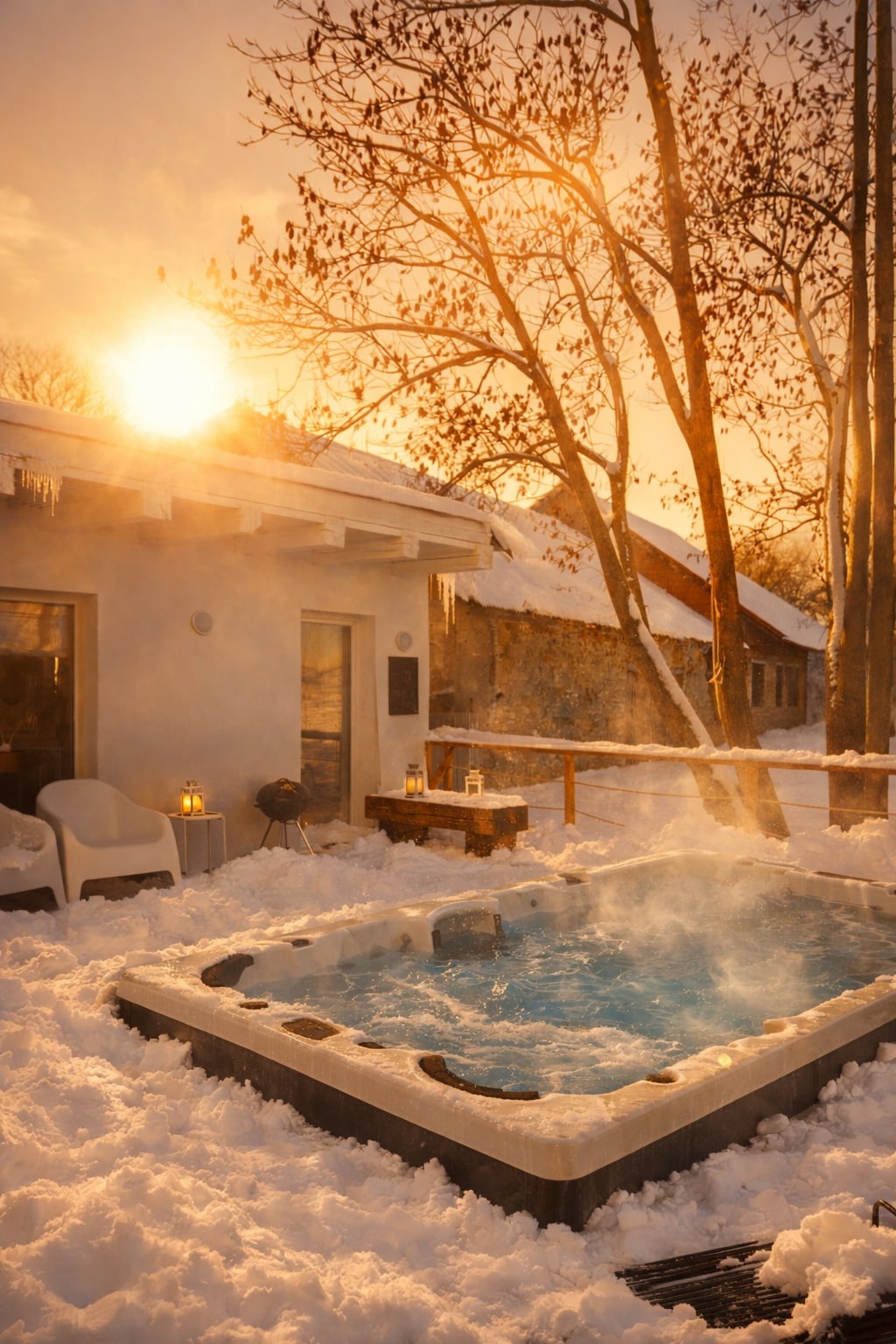 在小溪边放松,按摩浴缸,SwimSpa,芬兰桑拿
