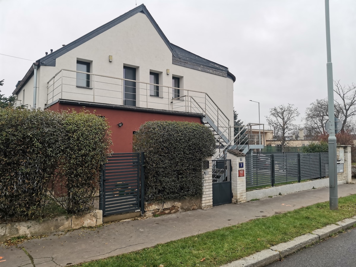 You can enjoy Rustical apartment where you feel like in the countryside , relax in the garden, parking your car next to the house and surfing internet ADSL . Studio is near airport. 8 minutes by taxi. You can reach city center in 30 minutes by bus 225 and underground line A or take your dog for a nice walk. In a walking distance are two great parks, Hvezda and Divoka Sarka. Nearby us is a lot of shopping centers and restaurants too. Prague castel is 12 minutes by car from us.