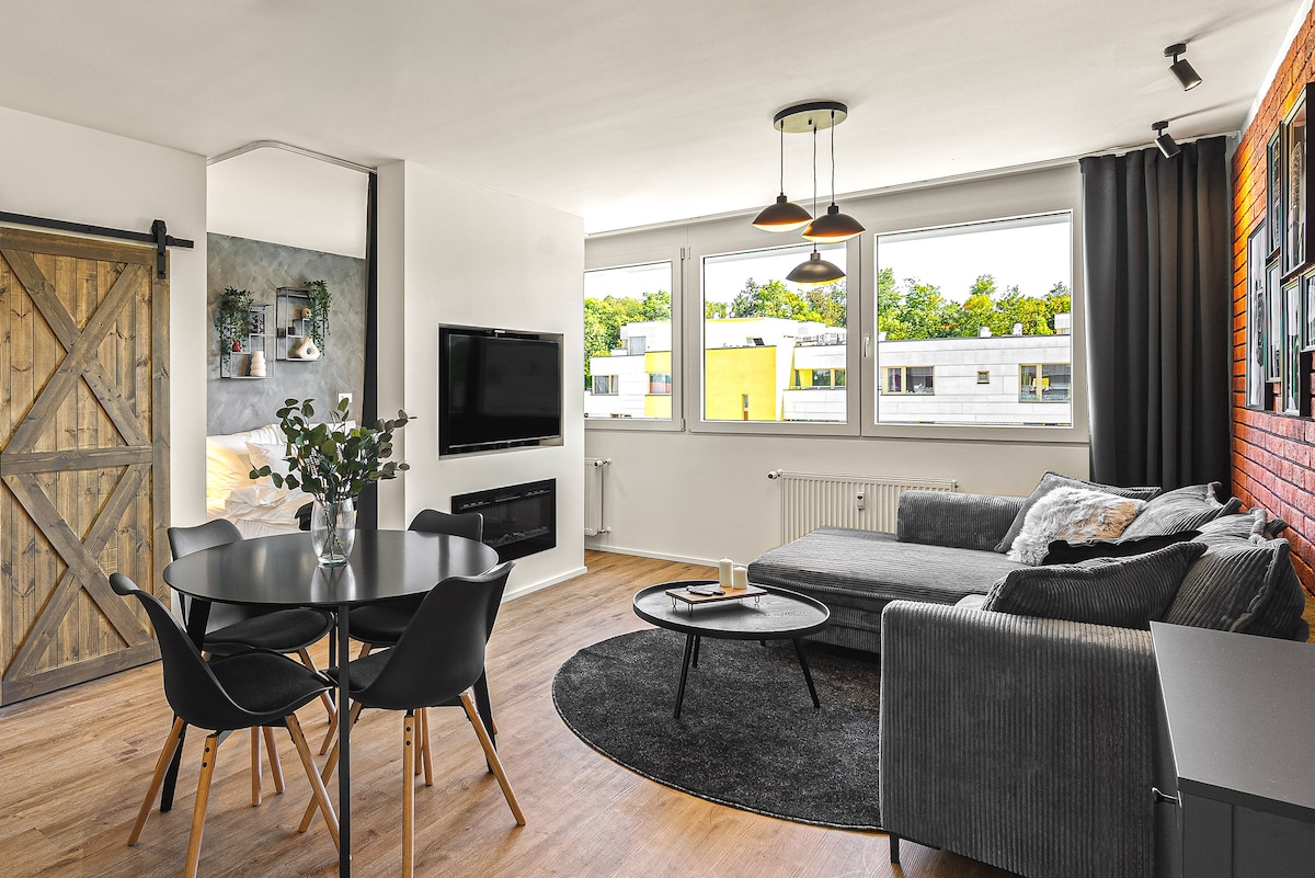 ❗Use for registered guests only. No commercial use, photography, or filming. Violation = fine❗ ⚜️ Welcome to a spacious, stylish loft with unique details. This unique space awaits your visit. ⚜️ Free garage parking & fully equipped apartment. ⚜️ 1st floor: kitchen with dining area, bathroom, living room with fireplace. 2nd floor: 2 double beds & wardrobe. ⚜️ Growing calmer area, 10 min from city center by car, taxi, or public transport.