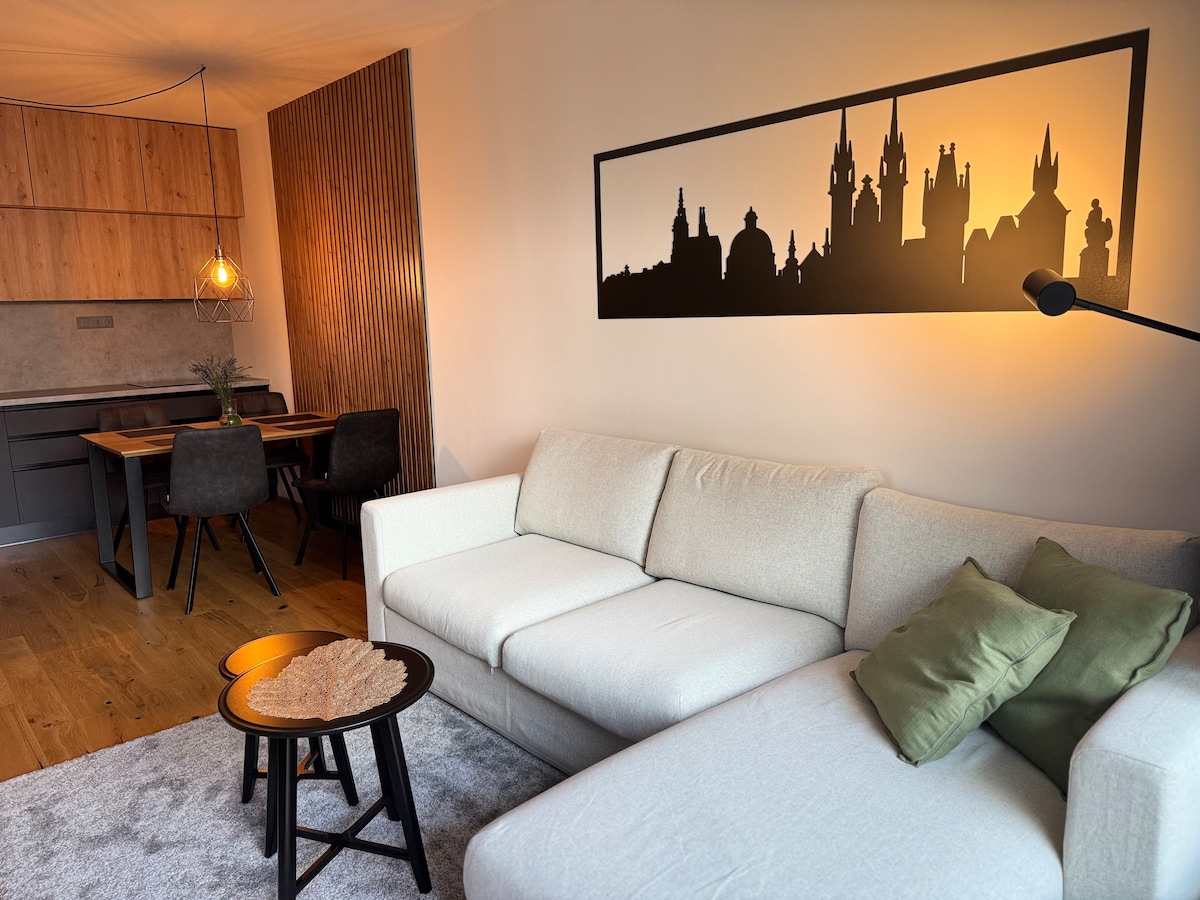 Experience unforgettable moments in our unique apartment, located in the heart of the historic New Town. This exclusive location opens the door to the city's attractions and immerses you right into the depths of its culture. Inside our apartment, you will find harmony and comfort. A double bed and a sofa bed provide the perfect space for rest and relax. You will be pleased with a modernly equipped kitchen, 2 bathrooms, and a separate study, or the possibility of using the sauna in the house.