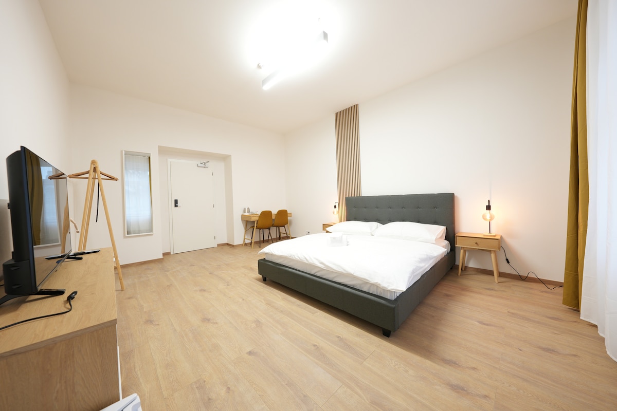 A lovely hotel room with a bathroom and a view of a quiet courtyard. Working desk. Free Wi-Fi. TV. The renovation took place in 2024. Quiet neighborhood within walking distance of historical monuments (800 meters Wenceslas Square). Shops, cafes, cinemas, parks nearby. Please note that city tax 2,2€/pers./night is to be paid upon arrival.