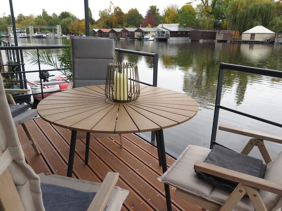„Kouzlo houseboatu s celoročním komfortem“ „I v zimě si užijete pobyt na vodě v pohodlí. Houseboat je vybaven topením Webasto a klimatizací s funkcí vytápění, takže je uvnitř vždy útulně a teplo. Perfektní místo pro romantiku i odpočinek Zažijte kouzlo Prahy z vodní hladiny! Náš moderně zařízený houseboat nabízí klidné a stylové ubytování přímo na Vltavě. Ideální pro páry i rodiny, kteří hledají romantiku i netradiční zážitek v srdci města. Soukromá terasa, Wi-Fi,klimatizace, kuchyňka