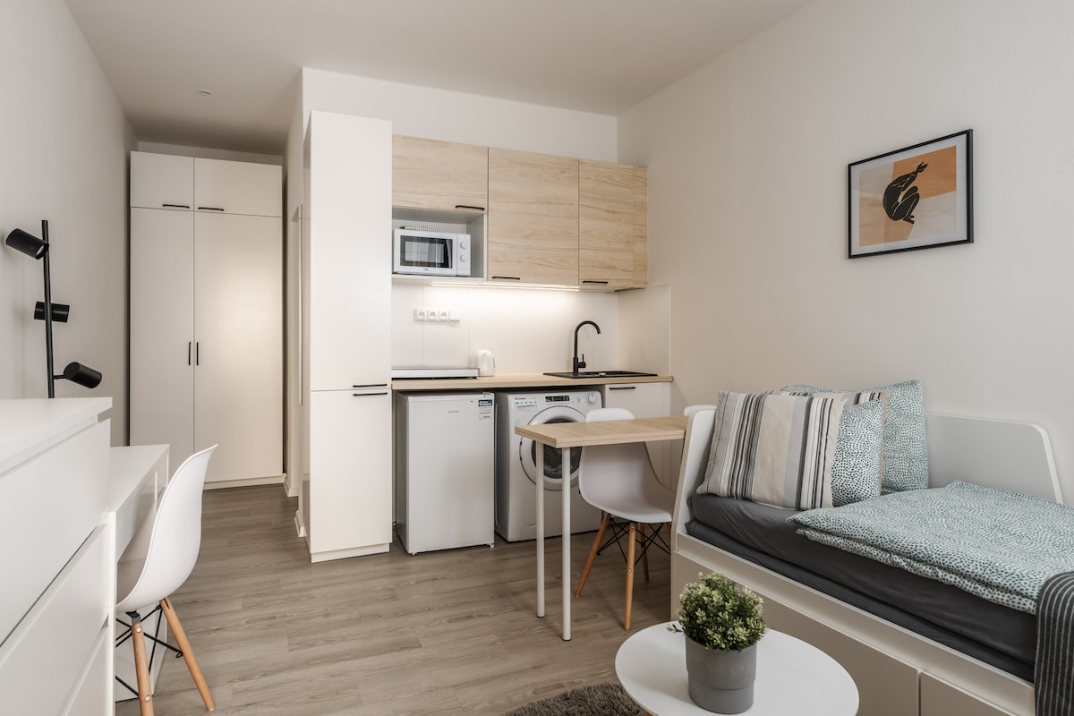 This bijou apartment has been completed only recently. It is situated in the very city centre, Prague 1 - New Town. Wenceslas Square is 10 minutes walk, Republic Square 5 minutes walk. There is well-planned lived-in kitchen in the apartment, comfortable sitting area and smart TV. The bedroom has a king-size bed, smart TV, and a wardrobe. The bathroom has a walk-in shower and toilet.
