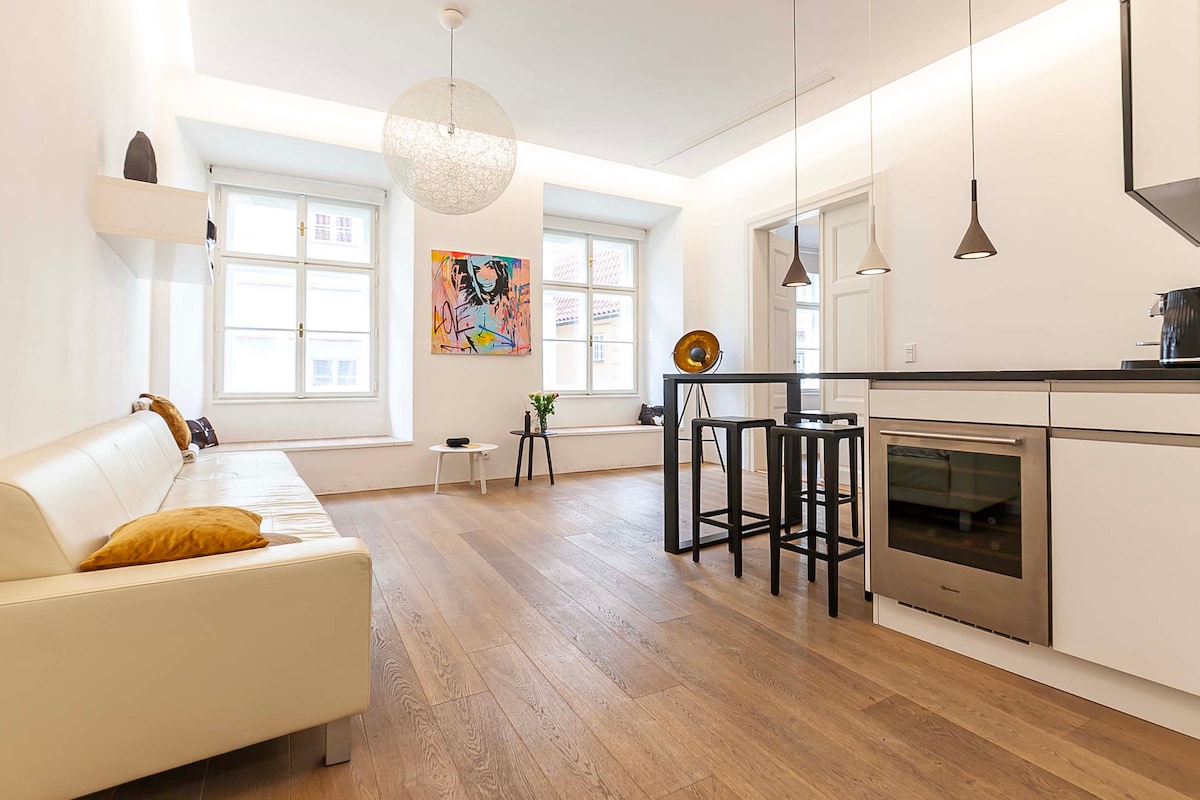 Modern newly refurbished & beautifully decorated apartment is located in the centre of Prague and just 5 minutes walk to the Charles Bridge , 7 mins to Prague Castle and surrounded by beautiful parks at Petřín Hill. The apartment offers: fully equipped kitchen, sound-proof windows, high quality mattresses for a comfortable sleep. Sleeps comfortably 4 people and a child . We can provide baby cot if you wish.