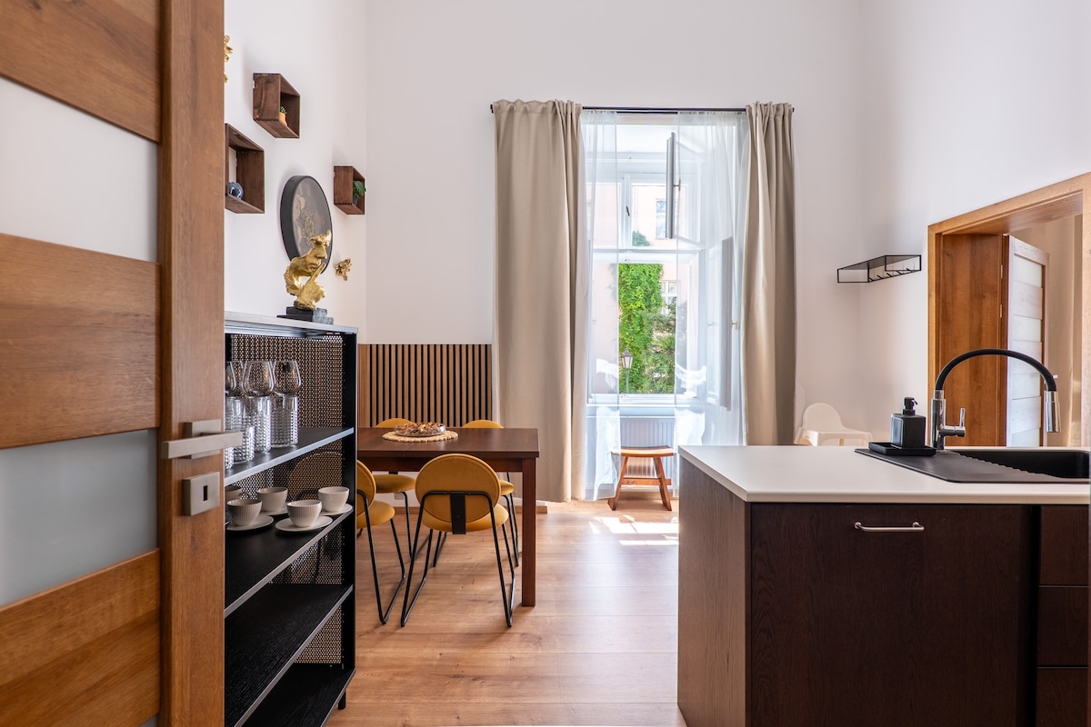 Stay in style at our chic Karlin studio! After a day of exploring the city, unwind on our peaceful balcony with a drink in hand. The studio is perfectly equipped for a comfortable stay - from a fully stocked kitchen, to high-speed internet for work or entertainment, and even a washer-dryer to make your travels hassle-free. And the cherry on top? We offer parking right in the building's garage, so no worries about finding a spot. Come and experience authentic Prague living in the heart of Karlín!