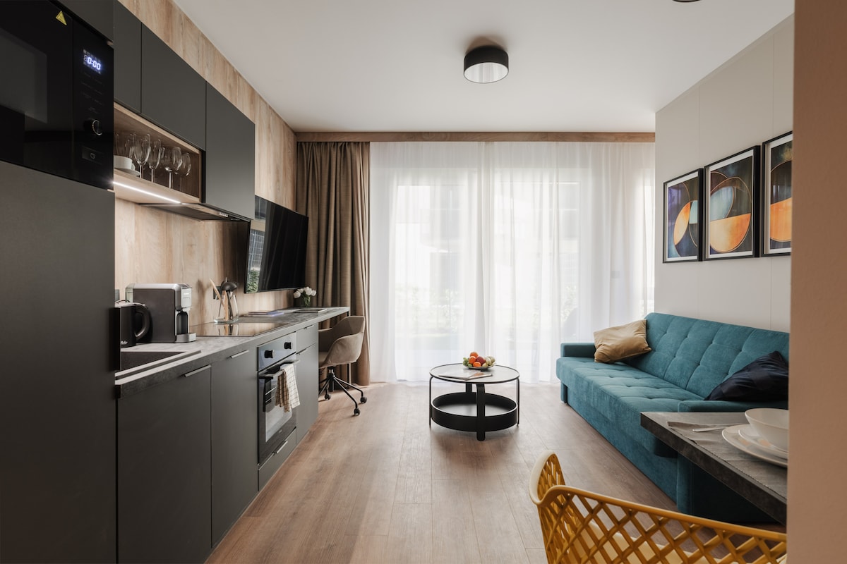 Wake up to a rare view of Prague’s historic Old Jewish Cemetery right from your living room. Located in the heart of Old Town, just steps from Charles Bridge and Old Town Square, you can explore the city on foot. The bedroom faces a quiet street, ensuring a peaceful night’s sleep in the center.