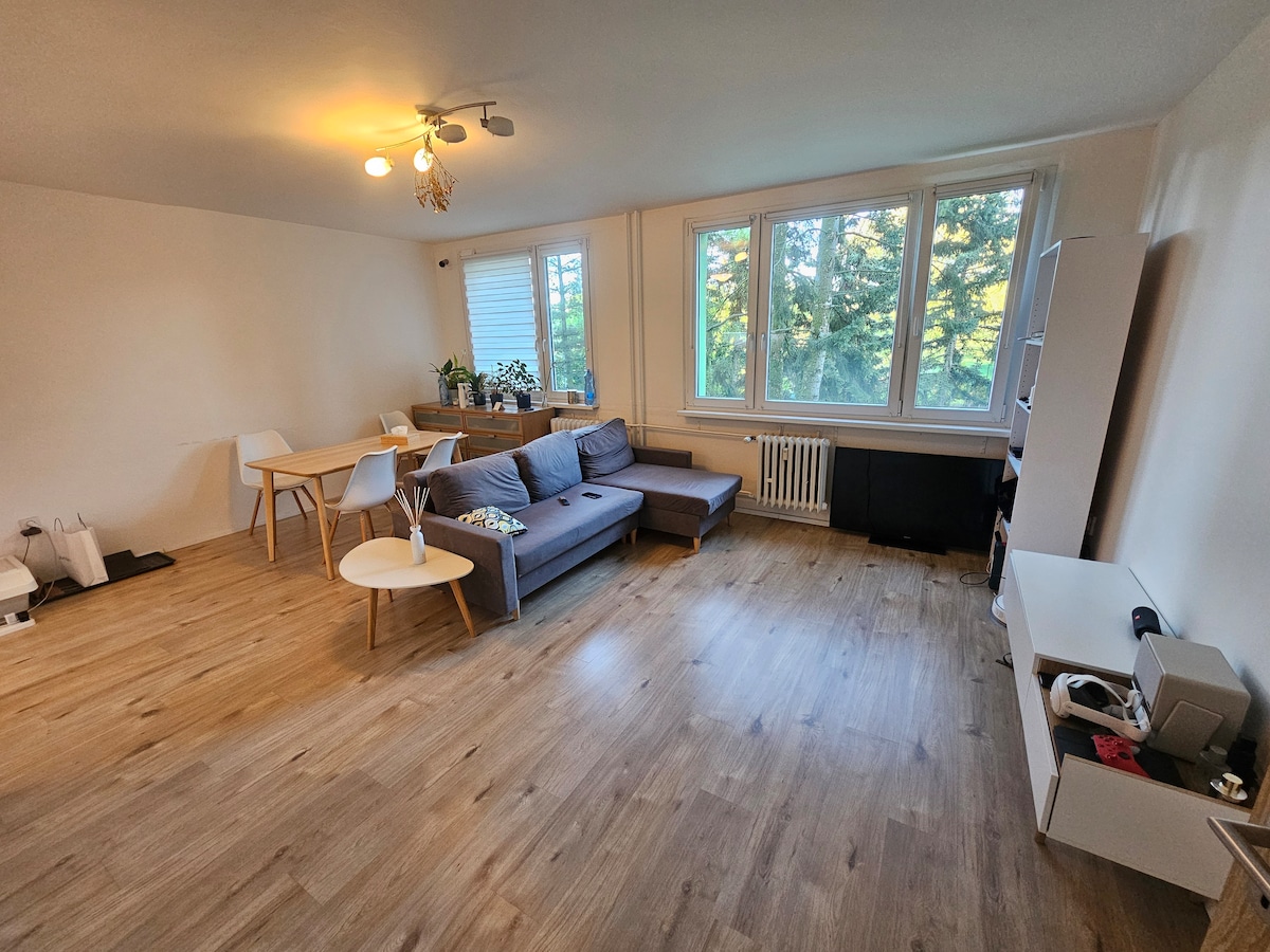 Discover this newly renovated apartment, which offers an ideal living space with all the necessary comforts. The bedroom, flooded with natural light, is equipped with a comfortable king-size bed for peaceful nights. The bedroom opens onto a balcony with a view of a majestic chestnut and bamboo tree and Vitkov Hill with the statue of Jan Zizka and a national monument. The kitchen is modern and fully equipped, perfect for preparing your meals. The bathroom has a large walk-in shower.