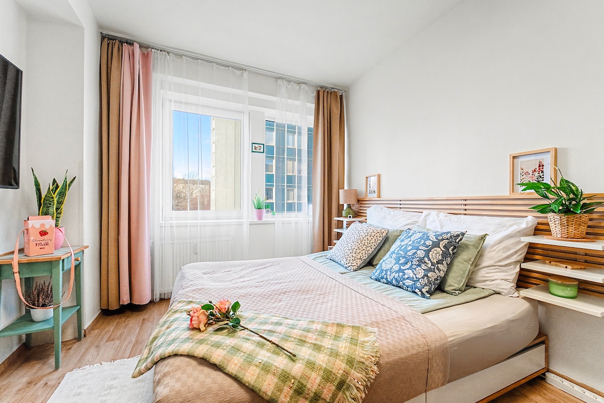 This nicely decorated flat offers a great connection to the city center. In the apartment, you can enjoy a living room with Netflix and a comfy couch that can be used as a sofa bed for accommodating 2 people. The kitchen includes everything for daily use. The bedroom has a queen bed with a memory foam mattress and can accommodate also two guests.