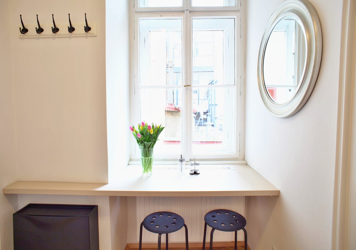 A beautiful modern airconditioned studio apartment in a renovated house in the hip Karlín neighbourhood in the centre of Prague, just at the underground station. The apartment is with high ceilings, full of light from two beautiful balcony doors, which give the flat unique atmosphere. From beautiful art to high quality memory foam mattress - everything is available for your perfect stay. Not a cheap Airbnb flat, but a designed home: fully equipped and full of quality materials.