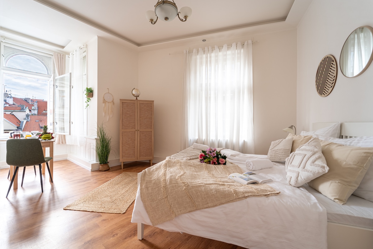 Cozy hostel room in the heart of Prague, just steps from Wenceslas Square. Clean, comfortable, and affordable stay in a prime location, ideal for short and long stays. Shared bathroom and fully equipped kitchen, plus free access to a washing machine, dryer, fridge, iron, and towels. 24/7 self check-in via QR code for maximum flexibility. Trams and Metro Line B are right outside. Fast Wi-Fi included.