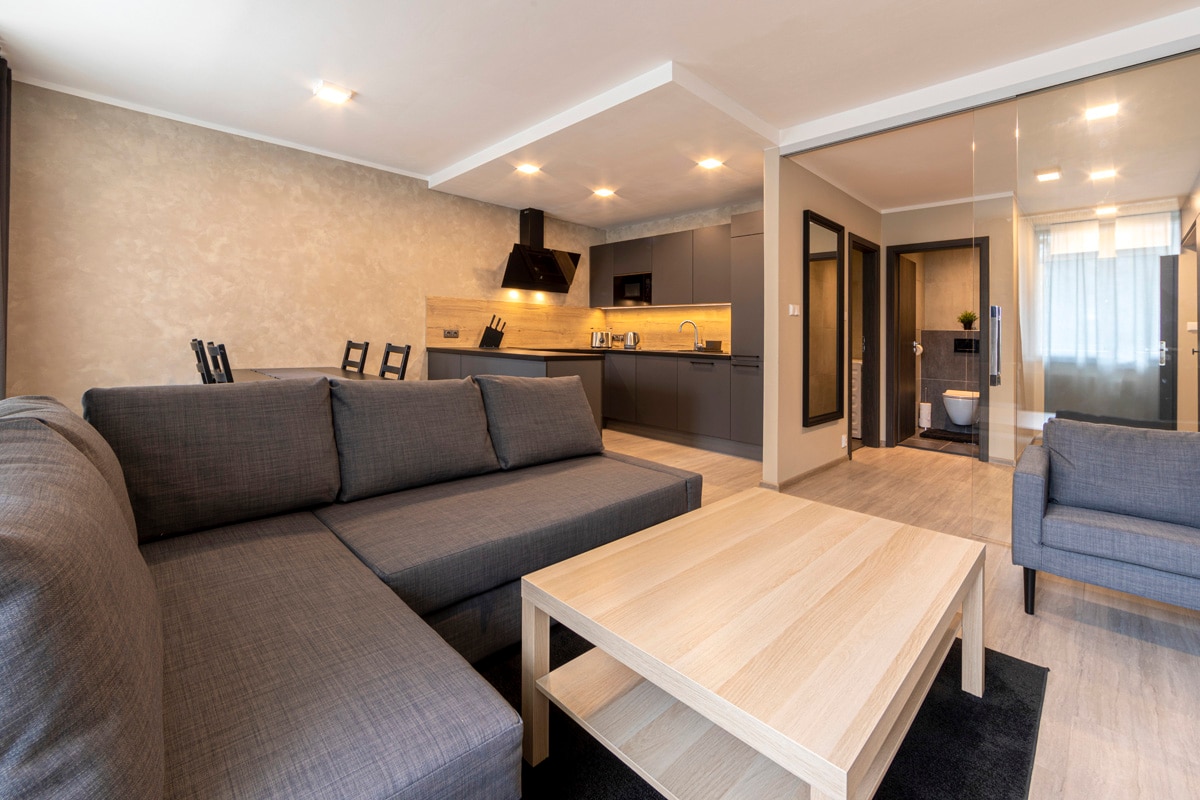 Nový moderní apartment, nacházející se v klidné častí Prahy v bezprostřední blízkosti parku a zároveň vzdálený jen 15 minut od centra Prahy. Je vhodný pro 2 osoby vyhledávající ruch velkoměsta a zároveň si po namáhavém dni chtějí nerušeně užít příjemný večer s posezením na soukromé terase 30m2, pod pergolou ve vlastní vířivce s celoročně vyhřívanou vodou či relaxovat v prostorné privátní sauně. Ke zpříjemnění romantiky stačí jen zapnout elektrický krb. Parkování zdarma. ve společné garáži.