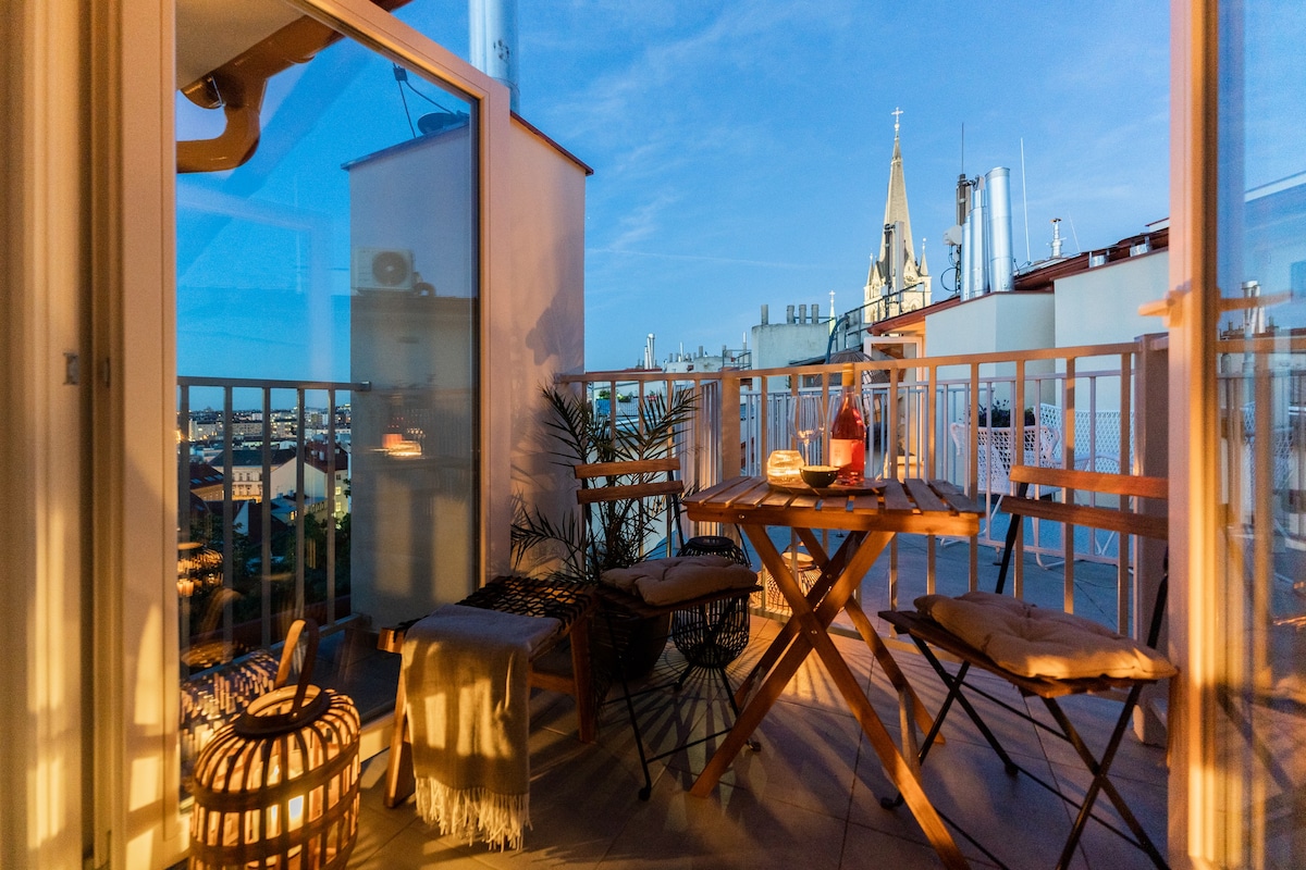 Chic Karlín Escape: Sunny Balcony & Secure Parking