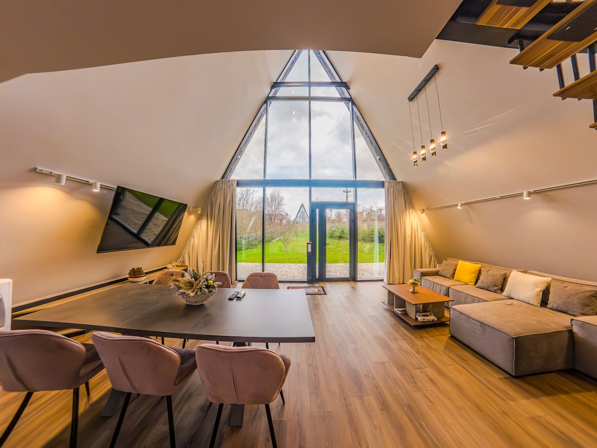 带水疗和山景的高级A型框架