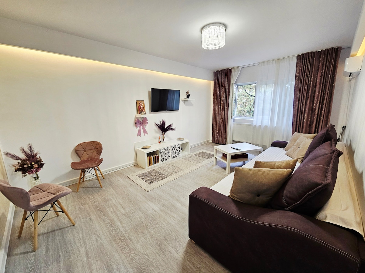 Apartament ultracentral, cu 2 dormitoare, 2 bai si un living, cu 1 loc de parcare privat gratuit, curat, spatios, de bun gust, obiecte de calitate, Wi-Fi, toate sa va asigure o sedere placuta!