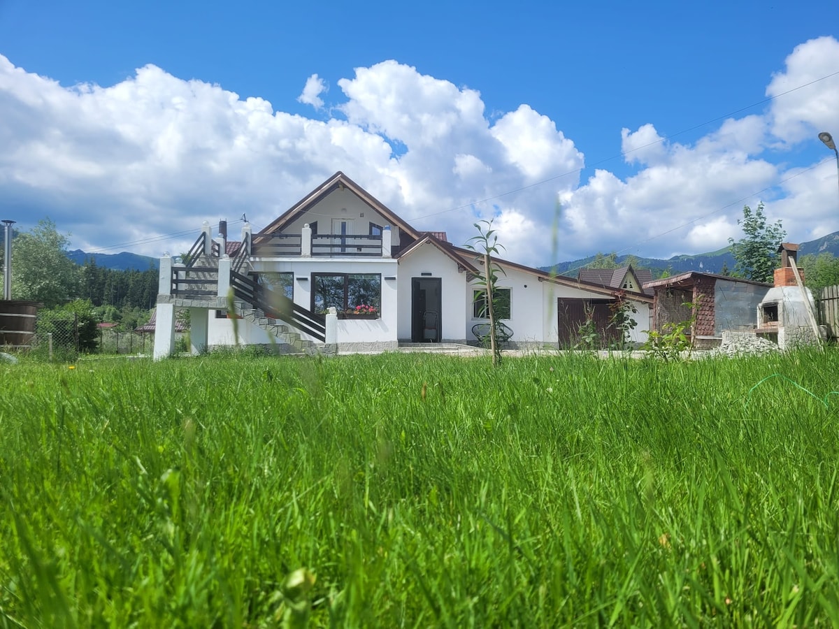 Comfort. Authenticité. Exclusivité. Uniquement pour VOUS. Le Chalet vous propose un séjour 'tout compris', dans le sens où vous aurez l'accès exclusif au Spa de 24m2 (Jacuzzi, Sauna, Douche, Table Bar, Frigo), au Foyer de 24m2, couvert et équipé (grill, chauffage au bois, eau courante, grande table conviviale) et au Jardin de 2300 m2, plein de sapins et d'arbres fruitiers. Situé à Busteni, à 120km de Bucarest, (Poiana Tapului) cartier Zamora, Le Chalet offre une Vue Imprenable sur les Carpates.