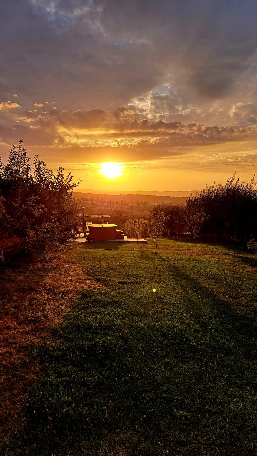 În mijlocul unei livezi deosebite, veți găsi o cabană modernă și minimalistă, învelită în lemn. În spatele ferestrelor mari, lumina naturală pătrunde în interior evidențiind spațiul deschis și finisajele curate. Ciubărul din exterior completează imaginea relaxantă a locului, invitând la momente de răsfăț. Această reinterpretare modernă a cabanei oferă o experiență deosebită, îmbinând confortul contemporan cu frumusețea naturală a mediului înconjurător care poate surpinde prin zgomot neașteptat.