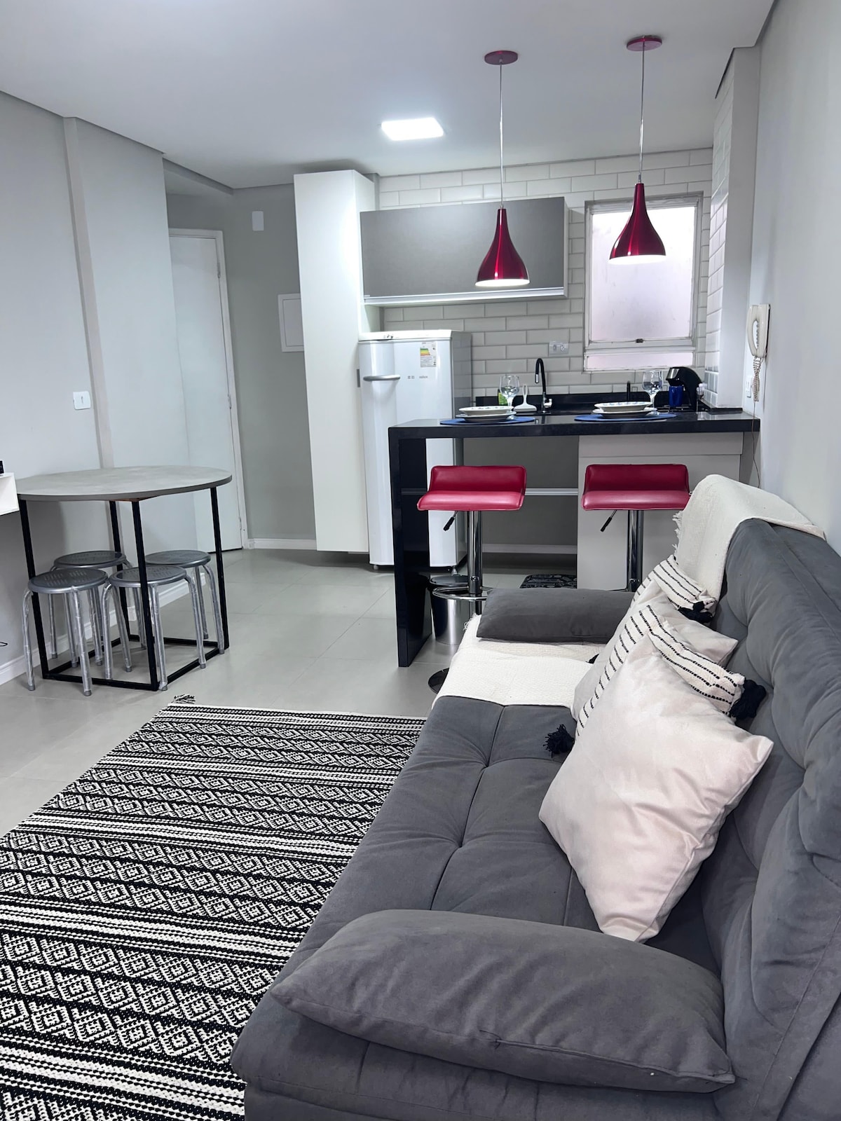 🌊 Relax by the sea in Mongaguá! Enjoy a peaceful stay with your family in a cozy beachfront apartment — just cross the street and you're on the sand! 🏖️ Excellent location on a quiet street, near the fishing platform, kiosks, restaurants, and a gas station. 🛏️ 1 bedroom, living room with Smart TV, Wi-Fi, social bathroom, beach chairs and umbrella available! 🚫 No pool | No beach service | No elevator ⚠️ Not suitable for guests with reduced mobility 🚫 Bed linen and towels not provided