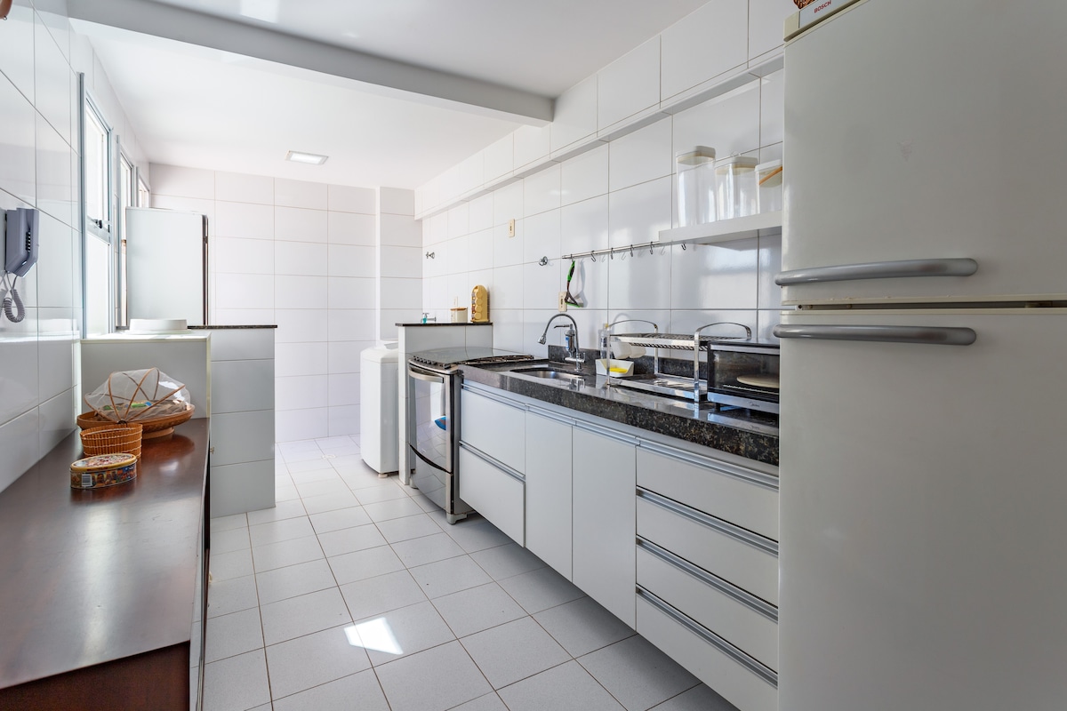 ROUPAS DE CAMA + TOALHAS + PRODUTOS LIMPEZA E COZINHA INCLUÍDOS. Cond. na praia sem atravessar rua. Piscina adulto e infantil reformadas. Apto c/ 3 suítes (acomoda 3 famílias c/ privacidade) + Suíte Serviço. Sala ampliada, cozinha americana e varandão com fechamento, cervejeira, todo mobiliado p/ sua familia. Ar cond. nos quartos, 3 vagas garagem, Wifi, segurança 24h, no melhor ponto da praia com águas calmas, quiosques, restaurantes, supermercado, padaria e lojas diversas.