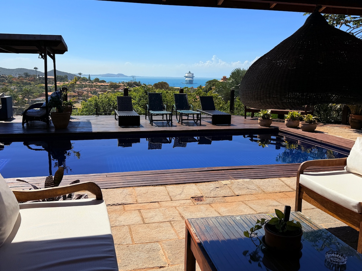 Nestled in a natural reserve, this private sanctuary offers stunning panoramic ocean views in Búzios with gorgeous sunsets, The open-plan design is perfect for gathering with family and friends in seamless indoor-outdoor spaces. Relax in the infinity pool, game room, or cook at barbecue and wood-fired pizza oven on the spacious deck. Inside, unwind in the cozy living room and sleep comfortably. With hammocks on each porch and elegant touches, We invite guests to fully embrace Búzios beauty!