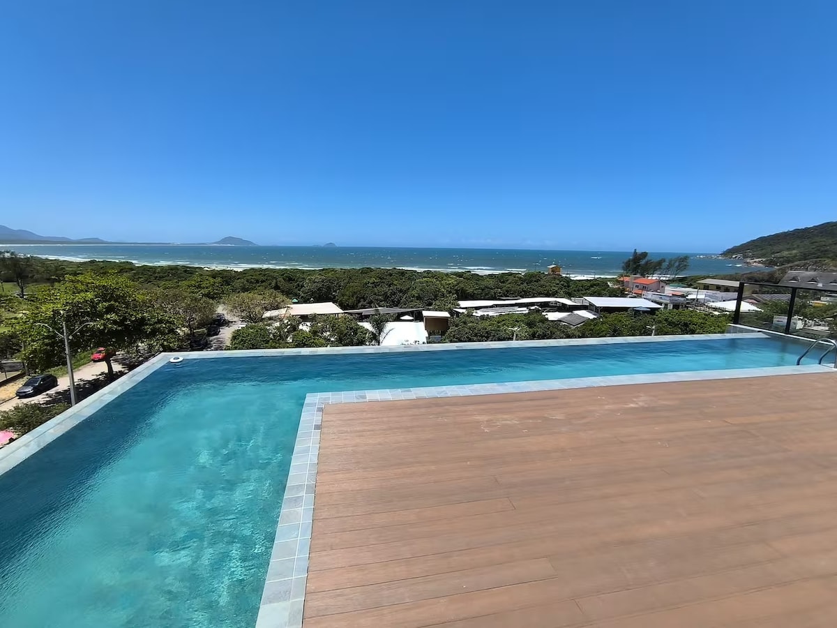 Bem-vindo à sua casa em Florianópolis! Aprecie a vista espetacular da varanda deste ambiente amplo e moderno, totalmente equipado para seu conforto. A localização é imbatível: a 1 quadra da praia, da Pista de Skate e do Projeto TAMAR, e a 2 quadras do centro comercial da Barra, com mercados, farmácias e restaurantes. Você ainda tem acesso às famosas piscinas naturais e às trilhas incríveis, e está a apenas 2 km da badalada Praia Mole. Viva a experiência completa da ilha.