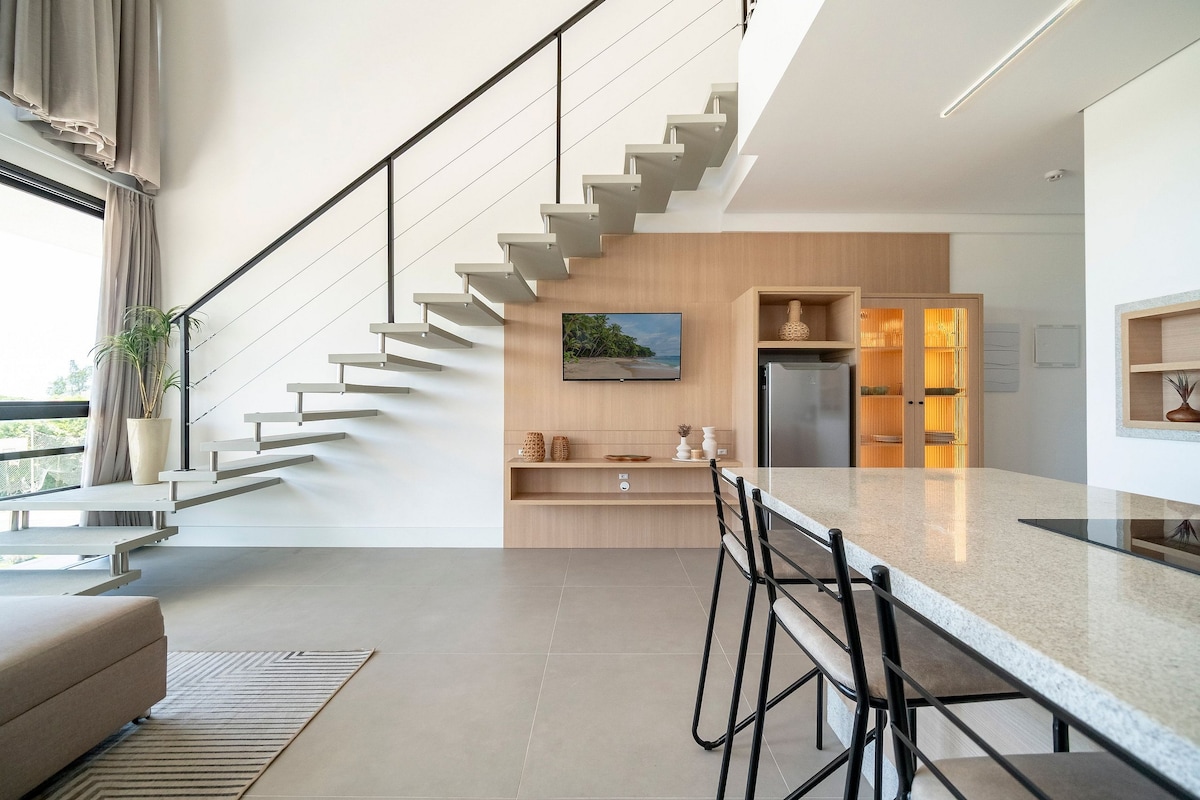 This exclusive loft is just 30 meters from the sea, in Barra da Lagoa, one of Florianópolis’ last preserved retreats. A place chosen by those seeking silence, nature, and authenticity, far from the obvious. The building features an infinity pool with views of the ocean and the mountains, creating the perfect setting to slow down. Nearby, you’ll find hiking trails, natural pools, surf spots, and the Barra channel connecting the ocean to Lagoa da Conceição.