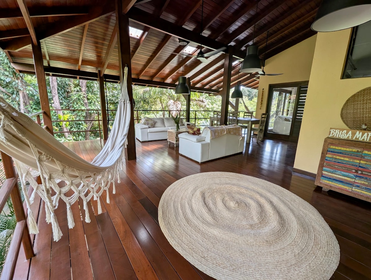 Casa confortável e com Estilo rústico e inserida em Uma Vegetação nativa que nós surpreendemos com visitas inusitadas de pássaros e micos ... Com Uma localização privilegiada a 800 metros da rua Principal ou seja da praia do centro . Com Guarita 24 horas dando Segurança e conforto para uma Estadia inesquecível!