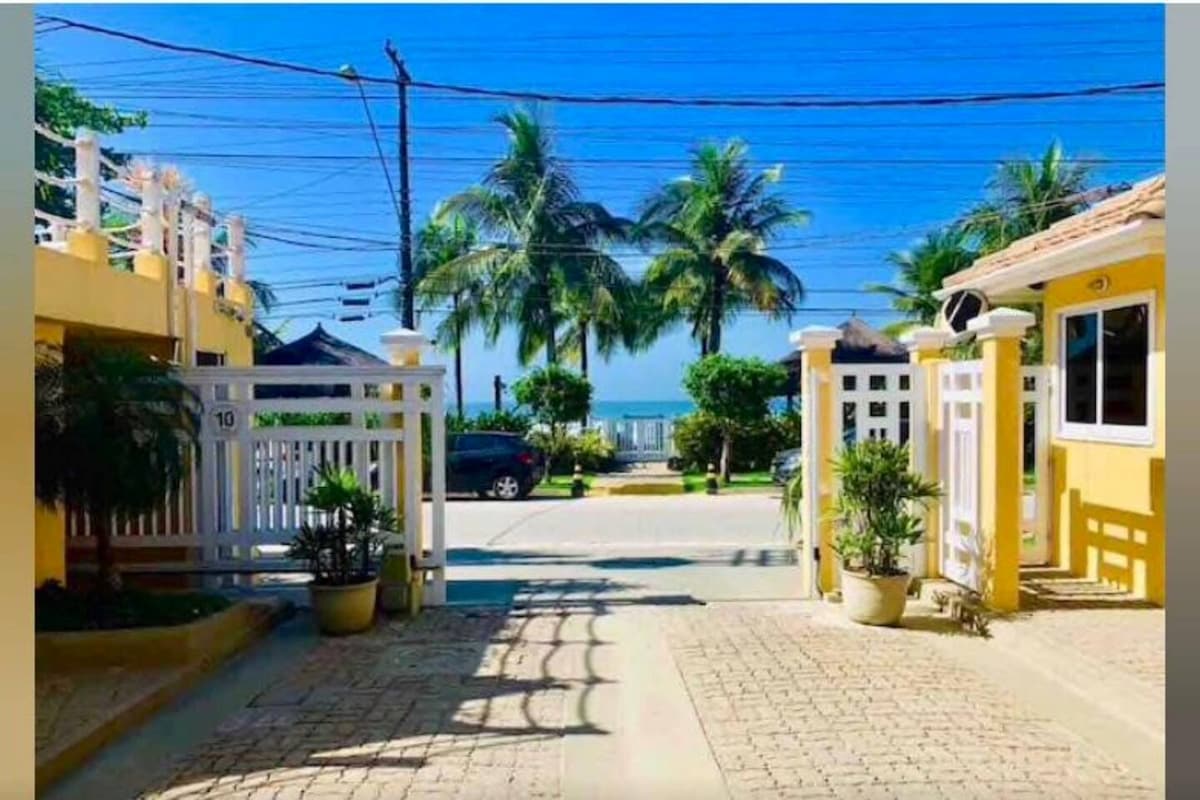 Lindo sobrado em condomínio fechado com poucas casas a 50 m da praia. Com 4 quartos, sendo 2 suítes, todos com ar condicionado. A sala é integrada a um lindo jardim com um chuveirão e área de churrasqueira criando um ambiente delicioso para os hóspedes. A casa comporta confortavelmente 8 adultos, sendo bem equipada com eletrodomésticos, utensílios de cozinha, lavadora e secadora de roupas. Pronta para uso. O condomínio tem segurança 24 h, com 2 vagas de garagem e serviço de praia e piscina.