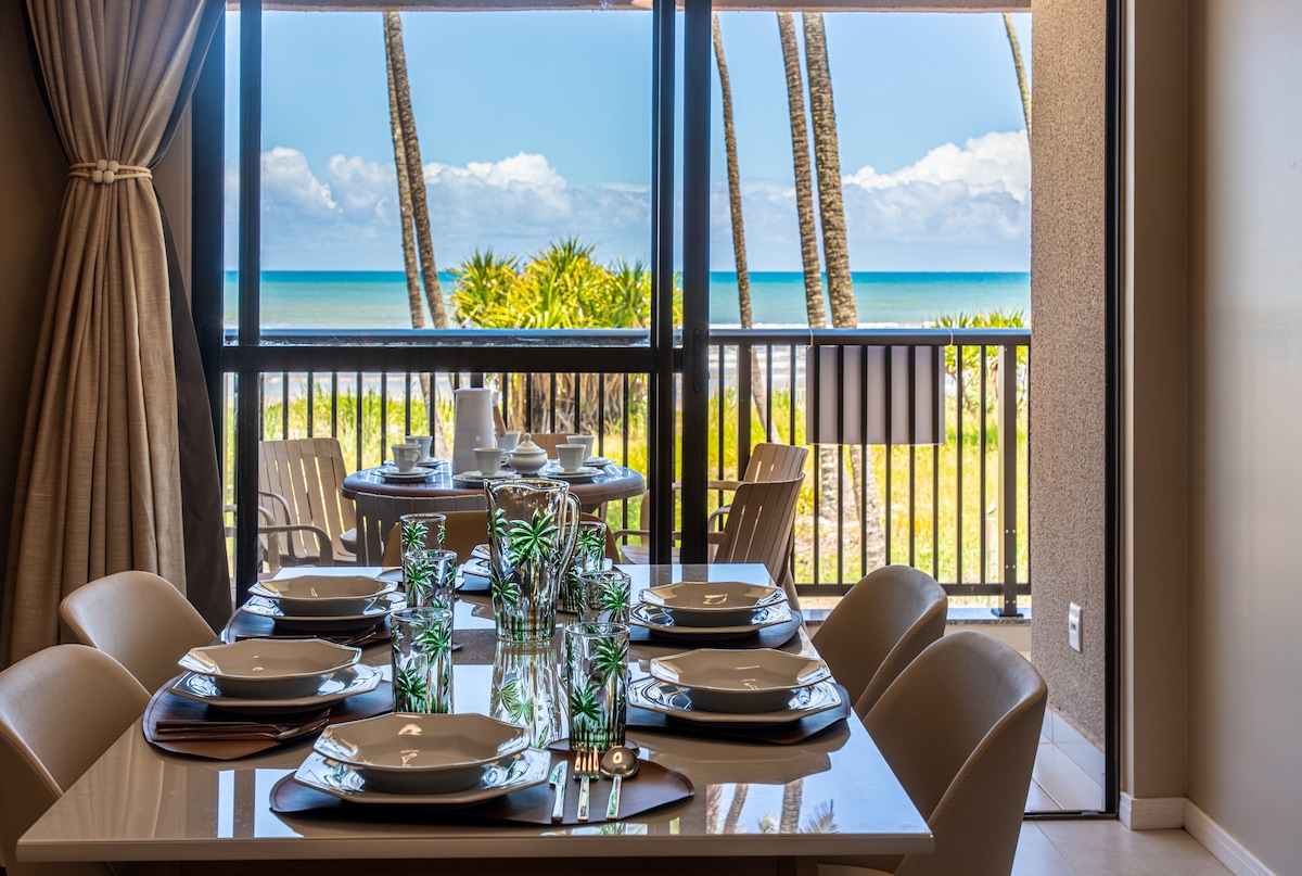 Em frente a uma belíssima praia. Condomínio pé de areia e com acesso à praia. - Piscinas conjugadas com deck. - Praia com barraca localizada a 5 minutos de caminhada. - Apartamento com ar condicionado na suíte, no quarto e na sala. - Toda mobília e acabamentos finos e de primeira qualidade. - Apartamento com vista para o mar. Venham desfrutar desse paraíso de condomínio. PS: Permitido no máximo 6 hóspedes Adultos. Localização: Após os Resorts Tororomba e Canabrava.