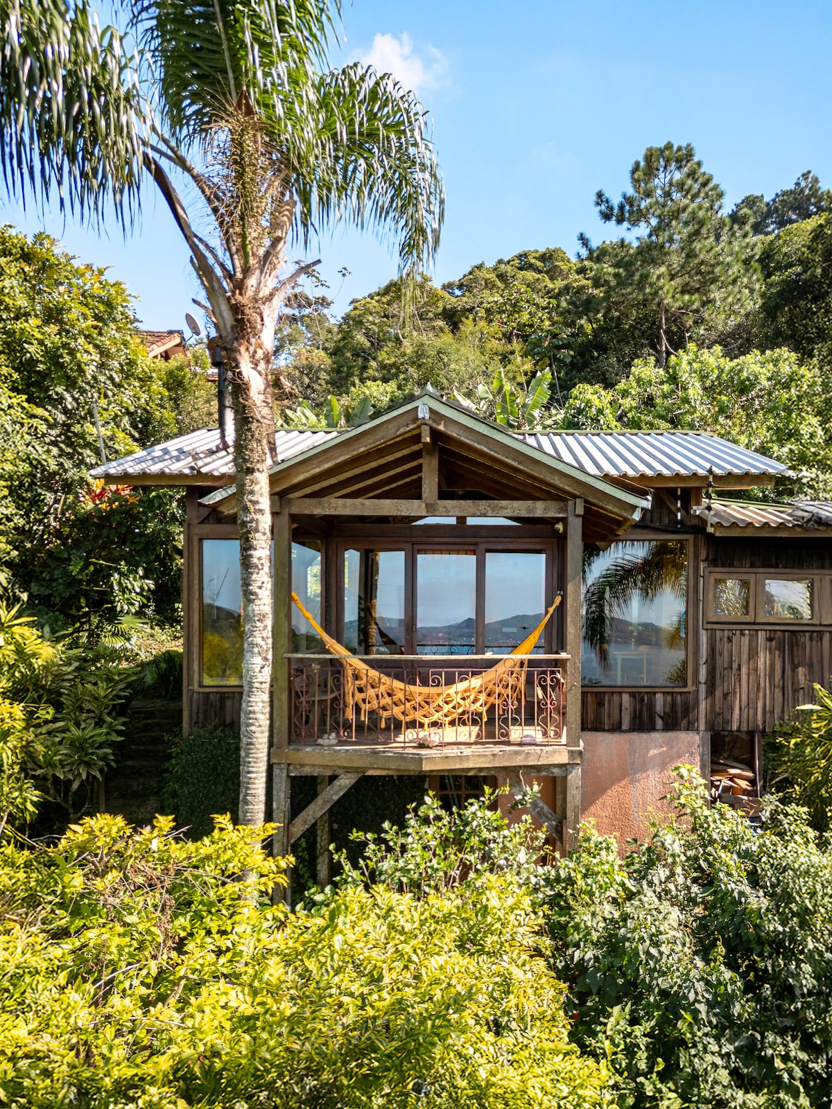 Cabana estilo TreeHouse, vista panorâmica, cercado por natureza é o diferencial desta exclusiva cabana! Com uma varanda acima da linha das arvores voce tera uma vista paradisíaca do oceano, mata nativa, canal cristalina e um vilarejo simpático de pescadores. Não a acesso a carros no morro, tornando se um lugar perfeito para amantes da natureza, aventureiros e quem ama praticar trilhas e esportes aquáticos. Localizado 15 minutos a pé da praia, estacionamentos, restaurantes e transporte público.