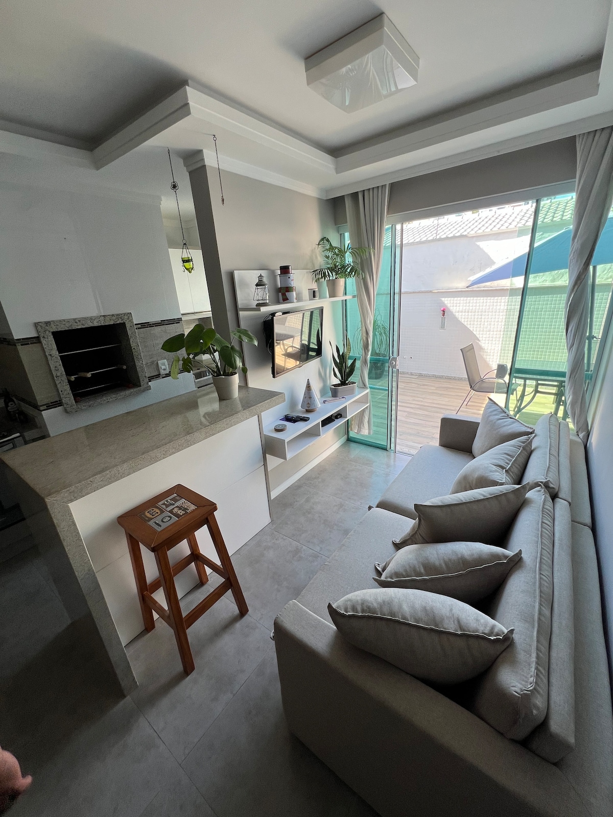 Wake up with an amazing view to the atlantic ocean, allow yourself to leave the windows open so that the morning sun and the singing of the birds wake you up early. My space are near from the Beaches Praia Brava and Praia de Cabeçudas, were are the best beaches around Balneário Camboriú. The house has 3 floors with rooms overlooking the sea. Complete Kitchen integrated with living room and deck with barbecue grill. 3 minutes to the best clubs and 30 minutos from the Beto Carreiro World.