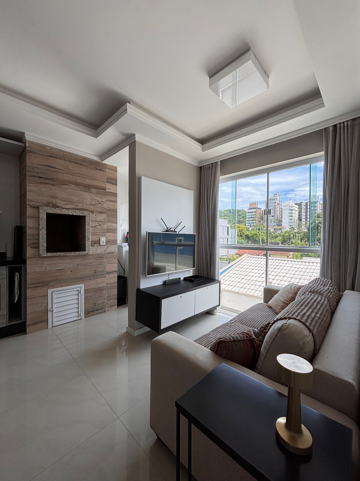 Lounge Apartment, located in Brava Beach and 10 minutes from Balneário Camboriú. The location is perfect. Only 5 blocks from Beach. Close all parties and restaurants. Condo with complete infra, Pool, Gym, Steam and 4 Barbecues. The apartment has Mountain-facing Jacuzzi with hydro and chromotherapy. Ideal for relaxing or take a romantic time. It has 58 'smart TV in the living room and 40' in the bedroom. Full kitchen. Machine washes and dries. You will love this place.