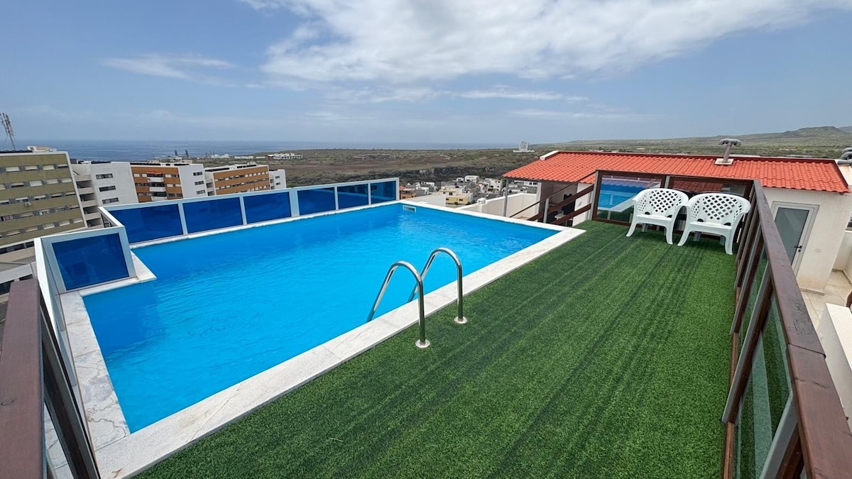 ⭐️Magnifique Duplex avec Piscine Privée et Vue Panoramique - Palmarejo Grande Découvrez ce superbe duplex, flambant neuf, situé à Palmarejo Grande, dans la capitale dynamique de Praia (Cap-Vert). Niché au cœur d’une résidence privée, ce logement combine confort, modernité et emplacement idéal. À seulement 5 km de la mer et du centre-ville (restaurants, centre commercial, clinique privée, transports en commun accessibles), il se trouve également à 9 km de l’Aéroport International Nelson Mandela.