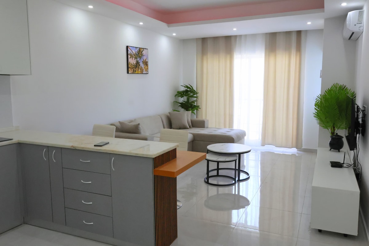 全新三卧室公寓,带游泳池,靠近海滩