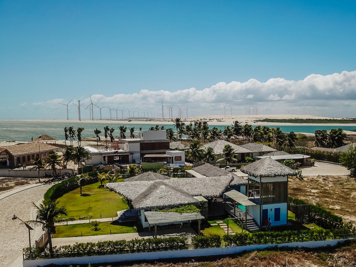 Às margens do encontro do rio Jaguaribe com o mar, a Casa Pipa está em uma localização privilegiada e de alto nível, no luxuoso condomínio Jaguaribe Villas, logo ao lado dos hotéis Jaguaribe Lodge e Jaguaríndia Village e de frente a um dos melhores spots de kitesurf do Brasil onde atuam 3 referenciadas escolas de kite. Dispomos de 4 luxuosos quartos climatizados, cozinha completa, área gourmet com piscina, estacionamento e espaço zen para a prática de yoga e massagens relaxantes ao ar livre.