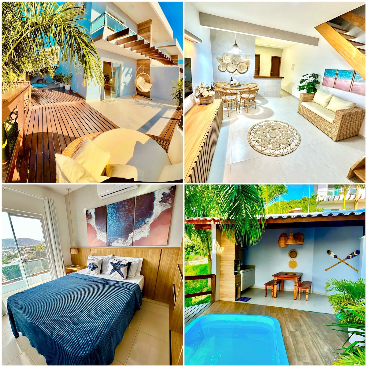 Viva o melhor de Búzios em uma casa completa, elegante e superconfortável! A casa é perfeita para famílias e grupos de até 8 pessoas que buscam privacidade e lazer em grande estilo. São 2 suítes, 1 quarto adicional e 1 banheiro social, todos com ar-condicionado e enxoval completo de cama, mesa e banho. Todos os cômodos contam com Smart TVs e internet Wi-Fi rápida, A casa é ampla, arejada, limpa e decorada com bom gosto, pensada em cada detalhe para oferecer uma estadia relaxante e memorável