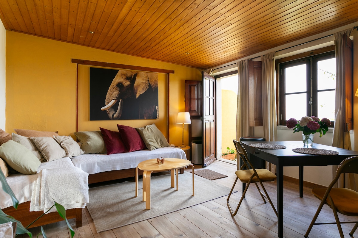 Pirica’s room was born in 2017. Is a new, cozy suite with an amazing bathroom and outside terrace with a stunning view to Atlantic ocean and Sintra mountain. Is set in the heart of picturesque village of Penedo * This suite is independent of our house, what allows to our guests have more privacy * In 2024 we decided to renovate and improve the interior space and also do a completely make over of all the house exterior spaces. We offer a peaceful and well decorated space, with lots of history!