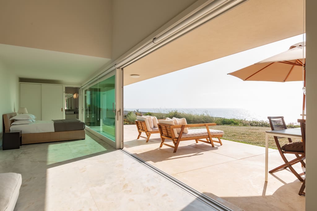 -Start the day with family breakfasts alfresco on the patio overlooking the sea at this stylish, white-walled hideaway with sleek wooden furniture. - Alternate between happy evening barbecues and taking relaxed strolls to local eateries. - The Villa is children safe and the pool is fenced for kids safety. -Trails through the hills, castles, and stunning landscapes are waiting for you! We have 1 more room (king bed and en suite bathroom). If you want to rent this 5th room, the price is €45/night