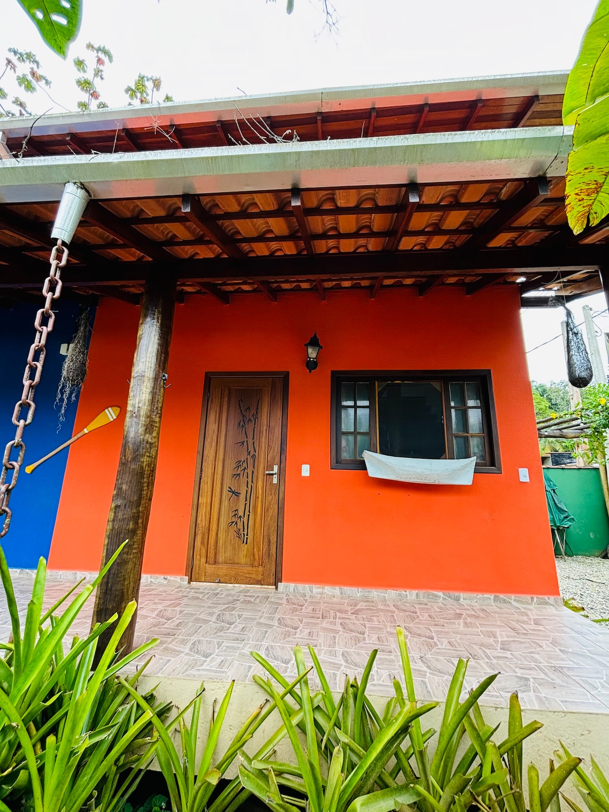 Relaxe e reconecte-se com a natureza em nossa Cabana na Árvore, um refúgio aconchegante construído em perfeita harmonia com um majestoso Pau-Brasil. Situada em um exuberante jardim tropical à beira do rio, a cabana combina rusticidade e conforto para uma experiência única. Aqui, você estará a 600m do charmoso Centro Histórico de Paraty, das praias e do Cais de Turismo. Desfrute da varanda privativa com rede, um local perfeito para observar os macaquinhos e os pássaros que visitam o jardim.