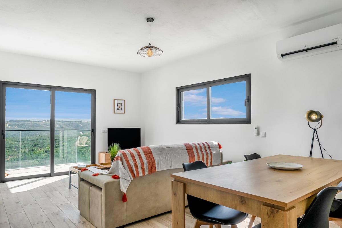 This 2-person stylishly furnished studio is set on the grounds of Monte dos Quarteirões, and is part of 2 residential properties, one of which is private property. It is a fully detached holiday home with privacy surrounded by olive and fruit trees. It has its own terrace, accessible via a private road, and a parking lot. Its quietly located with a magnificent view over the green valley. .