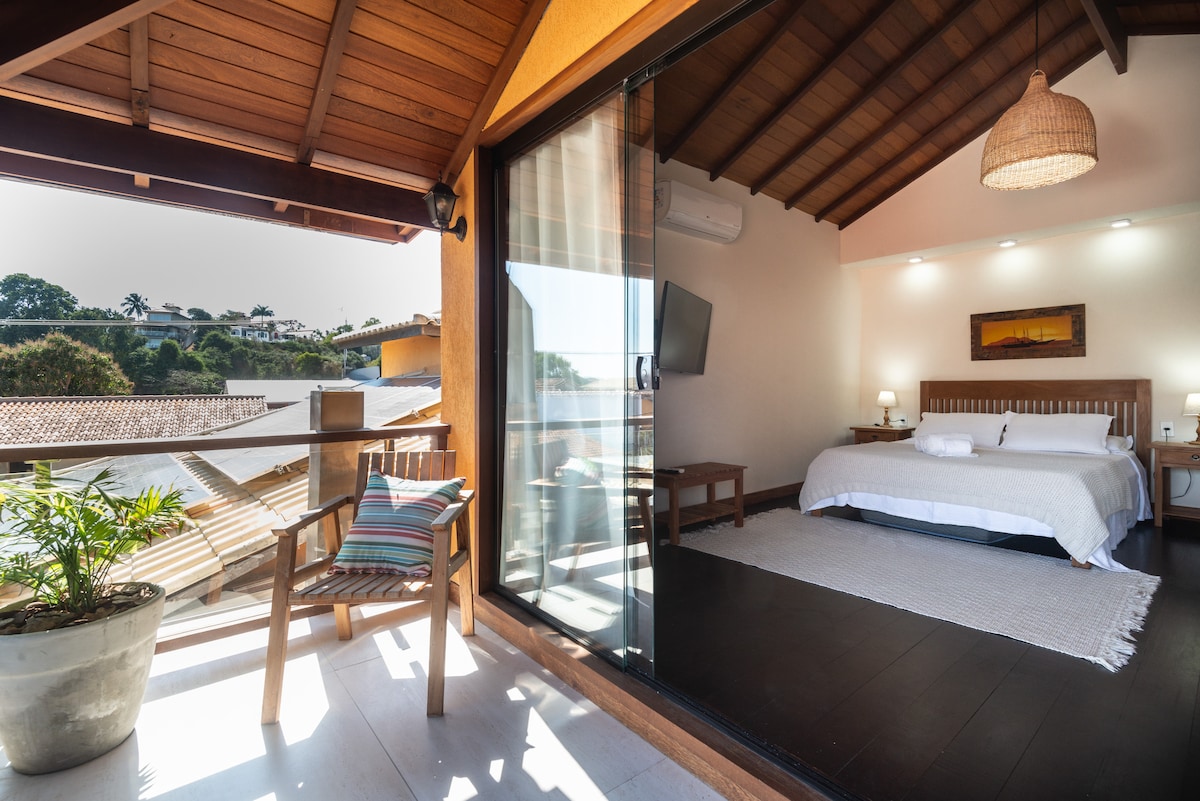 Newly renovated 2-floor house with 2 bathrooms (showers), spacious wood-floored living area, and balcony with partial ocean views—just 45 seconds to Orla Bardot’s sand & nightlife. Our fisherman-family heritage shines in every detail. Your perfect Búzios getaway: walk to Rua das Pedras, Centro, João Fernandes, and Azeda Beach.
