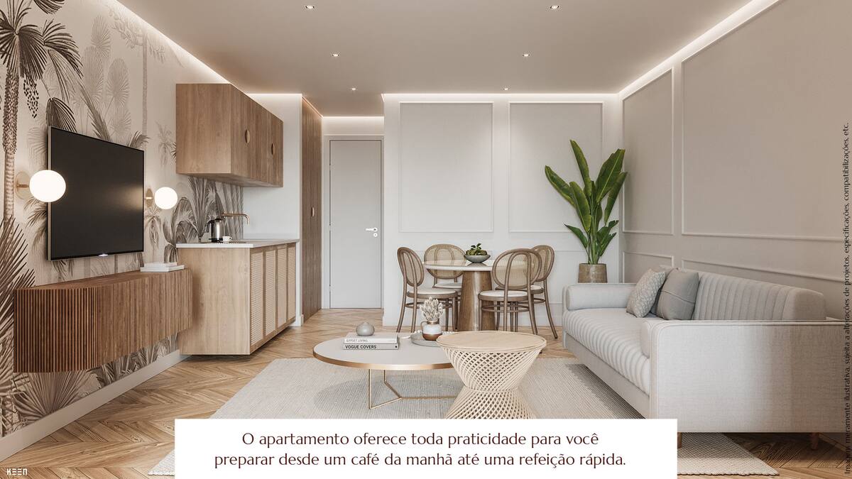 Apto de 2 quartos com vista para piscina em hotel boutique alto padrão recém inaugurado em Geribá. Ambiente sofisticado e muito confortável com 1 suíte, e um segundo quarto com possibilidade de dividir o ambiente para a sala. Possui varanda, uma minicozinha, área de estar com sofá-cama para 2 pessoas, e um segundo banheiro. Oferece TV, cooktop, microondas, frigobar, chaleira elétrica, e utensílios básicos. Instalações de spa e bem-estar, bar, piscina, sauna, parque infantil e espaço pet.