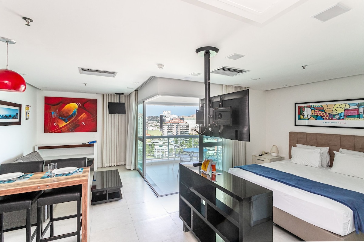 Geniet van een onvergetelijk verblijf aan het strand van Barra da Tijuca, waar luxe en rust samenkomen. Ontspan in het verwarmde zwembad met prachtig zeezicht, in een superluxe 63 m² 1-slaapkamer suite appartement, volledig uitgerust voor jouw comfort. Met dagelijkse schoonmaak, 24u-beveiliging, privéparking, fitness, sauna, jacuzzi en zwembad is dit de ideale plek om te genieten. Reis je met familie of vrienden? Bekijk ook mijn gloednieuwe luxe 2-slaapkamer suite via mijn profiel.